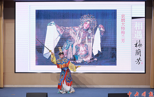 新闻中心讯(马婧鑫)为深入学习贯彻习近平文化思想,传承弘扬中华优秀传统文化,提升师生学员美育素养,9月17日晚,校团委邀请中国戏曲学院师生在万象城开展“相遇梅兰芳”京剧艺术演讲。本次活动系北京市“戏曲进校园”系列文化活动之一。