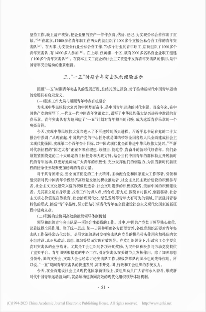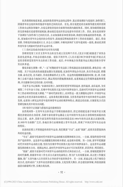 我系教师董大伟在《中国青年社会科学》2022年第6期发表学术论文《“一五”时期青年突击队的发展历程与经验启示》。该文认为,青年突击队的成立是我国社会主义建设中的一项创举,也是共青团围绕中心、服务大局的重要体现。长期以来,在中国共产党的领导下,共青团倡导成立青年突击队,并广泛组织一大批团员青年加入青年突击队,引导和动员广大团员青年在生产建设、创新攻关、抢险救灾等经济社会改革发展中发挥积极作用。“一五”时期的青年突击队对新时代中国青年运动具有重要借鉴意义:服务工作大局与照顾青年特点有机融合;积极构建协同高效的组织领导体制机制;及时总结成功经验并应对突出问题;坚持守正创新与借鉴有益经验相结合。