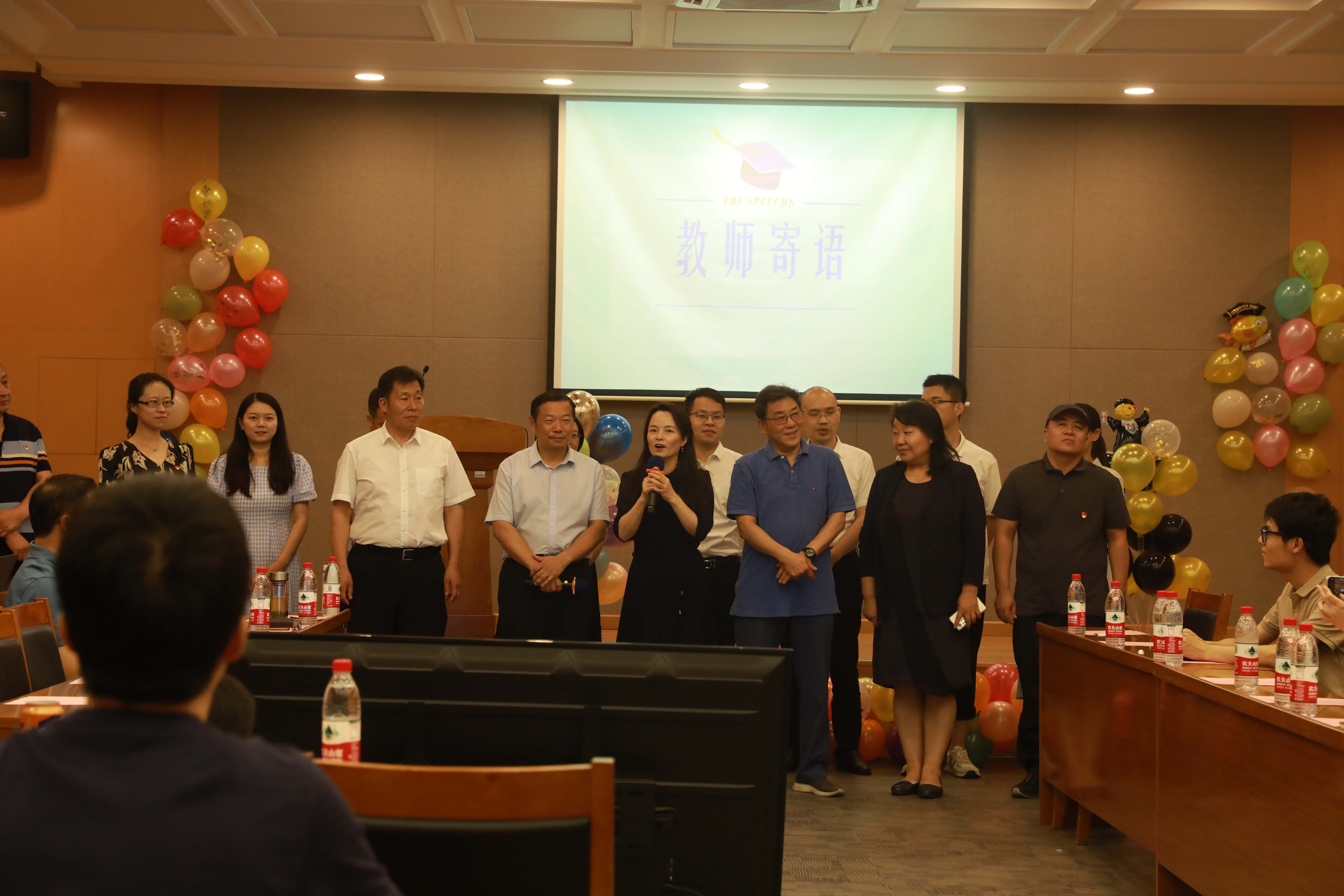 会场大屏幕上首先播放了系里为毕业生精心制作的“我们毕业啦”主题短视频,一帧帧照片、一幅幅温馨的画面,再现了师生三年珍贵难忘的青春印记。视频播放完毕,副校长林江发表了热情洋溢的致词,全体与会教师一一深情寄语。伴随着2021级女生合唱的《明天会更好》,欢送会正式拉开帷幕。随后,十余个精心准备的节目依次上演,无论是同学们倾情奉献的金曲串烧,还是老师们即兴演唱的年代歌曲,无不表达着来自全系师生心底最美好的青春祝愿。毕业生同学们一一走到台前,向在场的老师和同学深情分享三年研究生生活收获的成长和感悟,表达着感恩感谢和依依不舍的惜别之情。当毕业大蛋糕被推入会场,全场师生载歌载舞,将欢送会气氛推向高潮。由吴庆教授作词并亲自演唱的一曲《青春之我》大气磅礴,系主任王冬梅教授即兴演唱一曲《祝你一路顺风》充满温情,大家纷纷打开手机上的灯光,随着旋律挥舞起手臂,将离别时的千言万语化作会场的点点星光,映照进每个人的心里。
