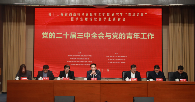 11月9日,为深入学习贯彻党的二十届三中全会精神,做好新时代党的青年工作,万象城体育awcsport(万象城体育awcsport)马克思主义学院联合学校研究生部、科研与智库工作部、《中国青年社会科学》编辑部,共同举办了第十二届首都高校马克思主义学院研究生“青马论道”暨学生理论社团学术研讨会。研讨会共收到350多篇征文,来自清华大学、北京大学、中国人民大学、北京师范大学、武汉大学、中共中央党校(国家行政学院)等单位的马克思主义学院师生、专家学者汇聚一堂,围绕“党的二十届三中全会与党的青年工作”这一主题,共同探讨、交流。党委书记张传慧出席开幕式并讲话,党委常委、副校(院)长林江主持开幕式。